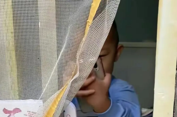 隔着窗户往里看,房间里就一个两岁多的小男孩,拿着手机在玩。邻居又问小孩子,爸爸今天会回来吗?小孩子摆摆手。
