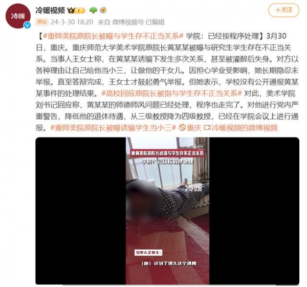 重师美院原院长被曝与学生存不正当关系,学院:已经按程序处理