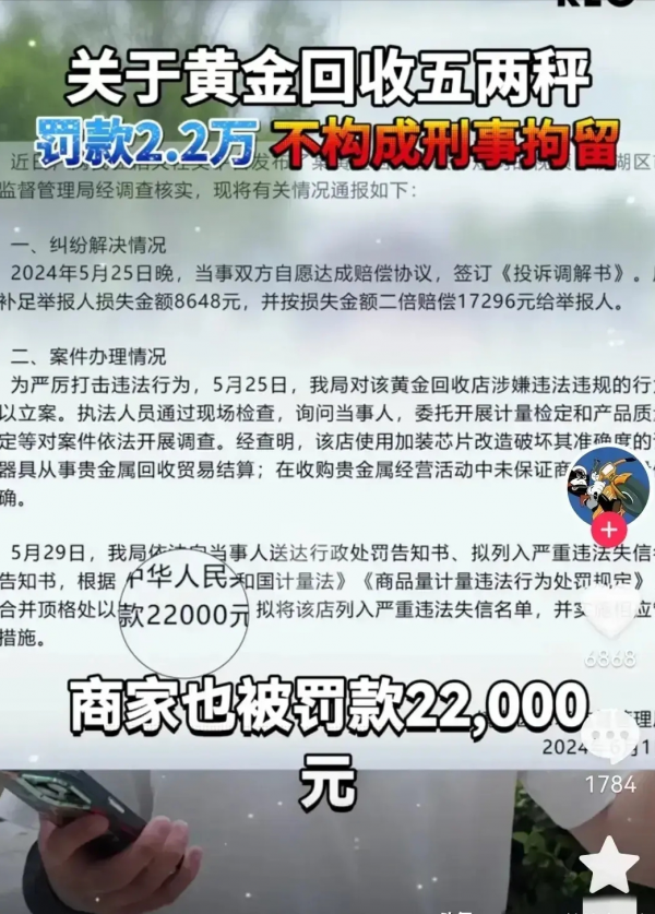 最终法院作出了正义的裁决:这些商家确实涉嫌诈骗罪,已被采取强制措施。这个结果无疑让所有关注此事的人都感到踏实和欣慰。毕竟在先前的一个类似案件中,博主虽然也被同样的"五两秤"骗走了8600多元,但商家仅被罚款2万多元,赔偿了双倍损失就逃过了牢狱之灾。明眼人都能看出,这种处理方式明显过于宽松,体现不出法律的尊严。