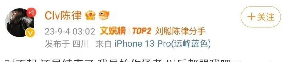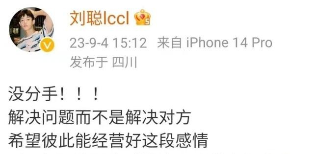 这位网友猜对了一半,没有等到两天,仅仅过了十几个小时,刘聪就站出来澄清分手的消息了:没分手!希望接下来和陈律继续好好经营感情。