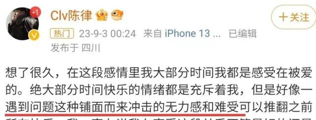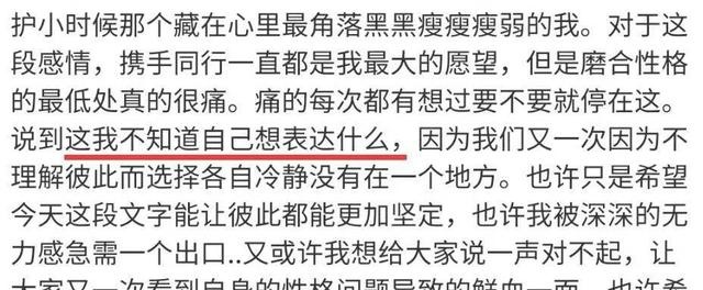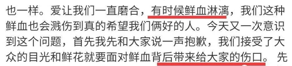 ③ 陈律称自己有心去磨合和好好经营感情,但过程中"有时候鲜血淋漓",越相处越受伤,也担心会让外界失望。