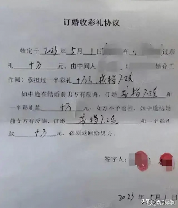 但比较反常的是,在订婚宴上,双方签订了《订婚收彩礼协议》,书面规定:5月1日交付彩礼10万元和戒指7.2克。如果席某某单方面取消婚约,则无需退还彩礼和首饰;如果被害人单方面取消婚约,则需退还彩礼和首饰。