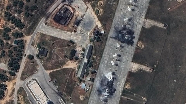 此外,卫星照片还显示了一架被摧毁的米格-29"支点"战斗机。不过据分析,该机场战争爆发后并没有起降过米格-29战斗机,因此这很可能是已经退役的旧飞机,作为诱饵被摆放在机场。
