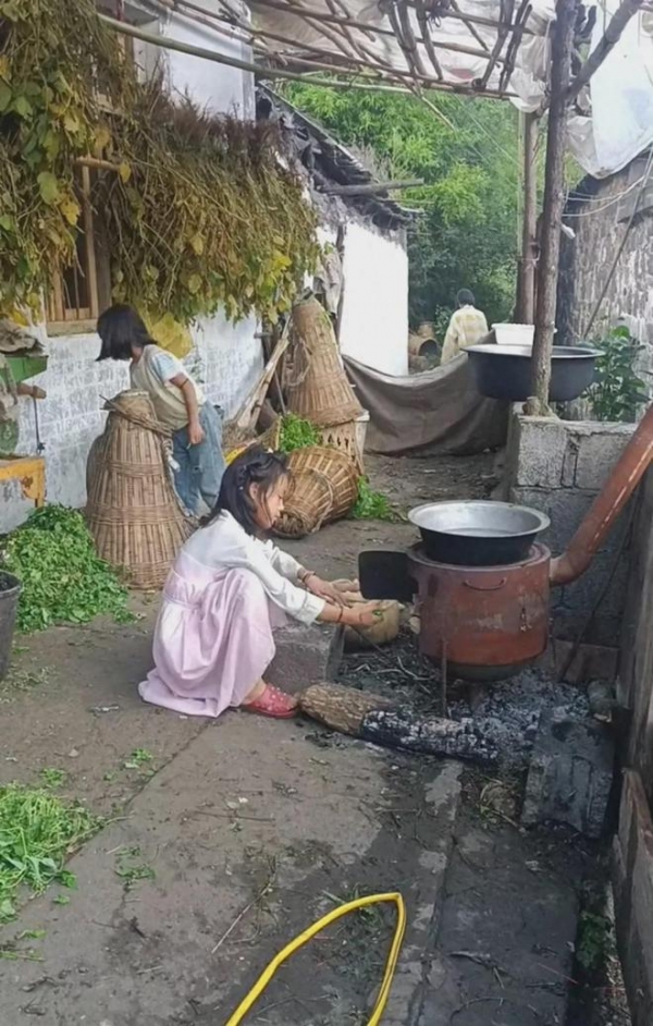 现在最大的女儿已经到了上高中的年龄,最小的女儿还背在背上。还别说,家里虽然贫困,穿的衣服也都破烂,披头散发,脸上满是污渍,但是女儿却个个长得很好。