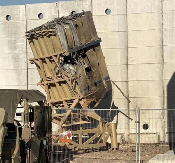 当地时间6月5日,黎巴嫩真主党声称使用制导武器摧毁了一套以军"铁穹"防空系统。图为遇袭受损的"铁穹"发射器。