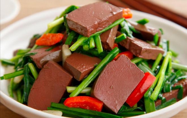 动物的血液也含有大量的铁元素,可以以血补血,猪血、鸡血,鸭血等动物血液里的铁的利用率为12%,可以预防缺铁性贫血。