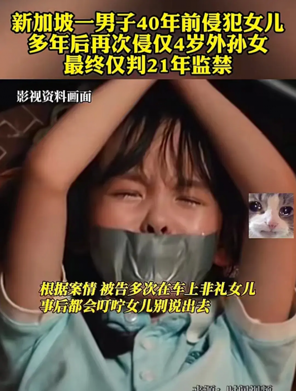 4月1日,新加坡媒体曝光了一起令人震惊的家庭性侵案件。一名75岁的男子在过去40年间先后性侵6岁小姨子5年,4岁女儿8年,以及4岁孙女13年,被法庭判处监禁21年3个月。这一恶劣行径在社会上引起了广泛关注和强烈愤慨。