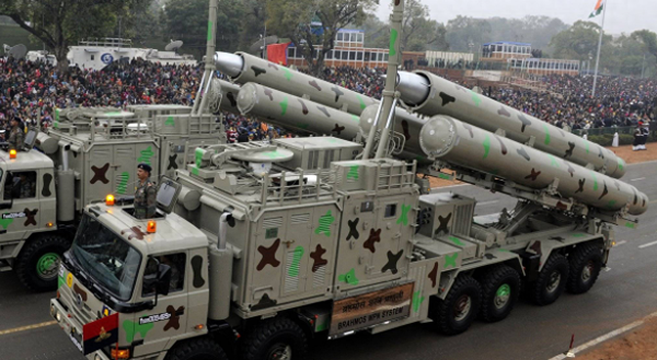 "布拉莫斯"巡航导弹是印度利用俄罗斯提供的技术生产的。这型导弹以冲压喷气发动机驱动,带有固体推进剂助推器,可以从陆基、潜艇、舰船以及飞机上进行发射。它的速度可以达到3马赫,有效射程可以达到300公里,在攻击的末端能够下降到距离海平面10米到15米的高度进行蛇形机动,所以它具有一定的突防能力、抗干扰能力和抗反导拦截能力。