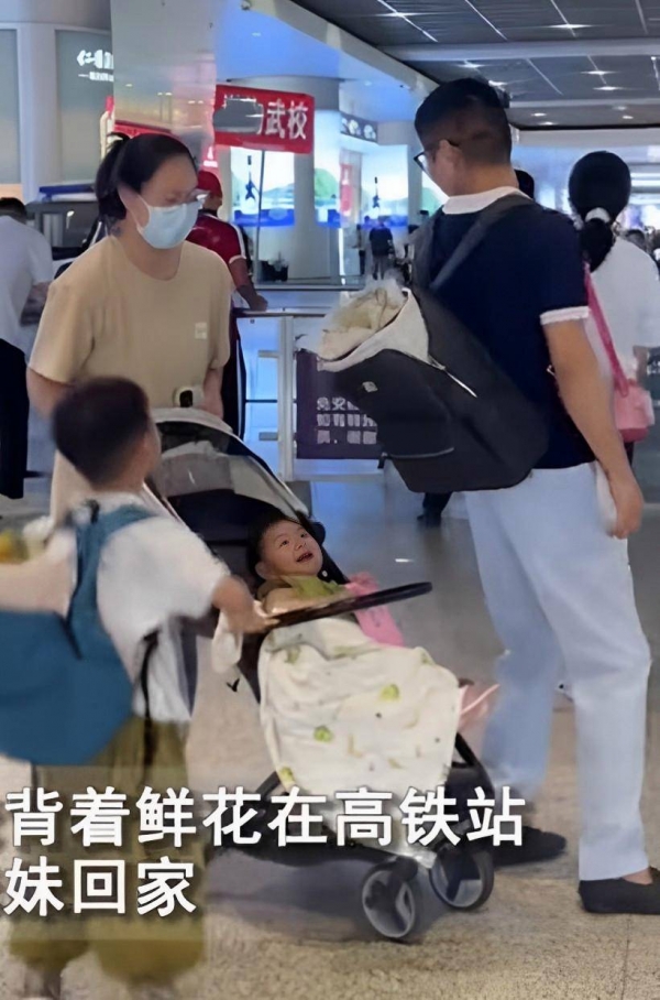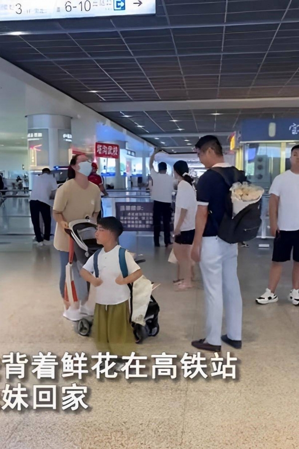 原来,男孩是跟着爸爸来这里迎接妈妈和妹妹回家,为此,他们还特地买了鲜花:生活需要仪式感嘛!