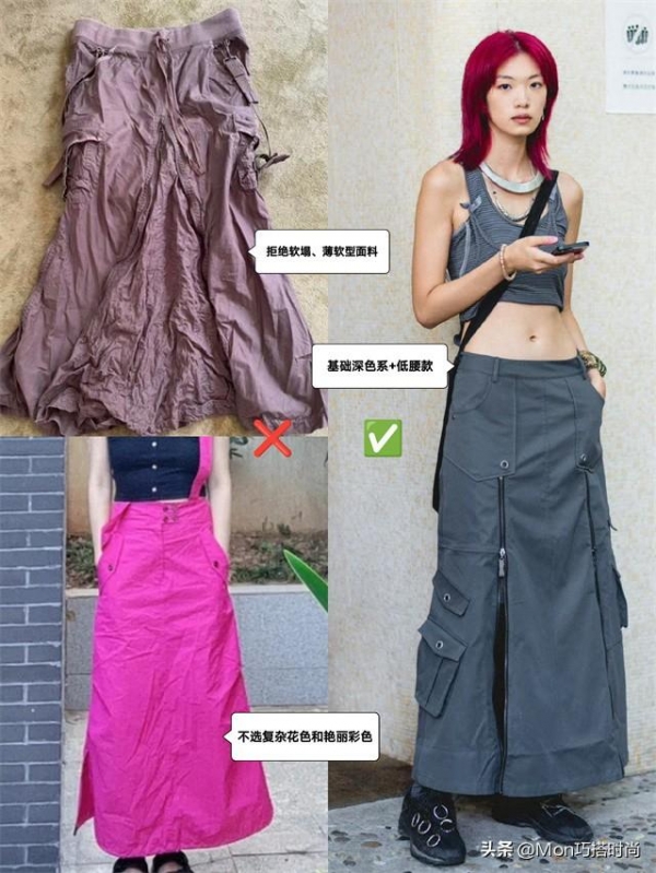 长款运动裙要选黑白灰棕才有质感。软塌薄软型面料、复杂花色和艳丽彩色都廉价难驾驭,记得避开哟~