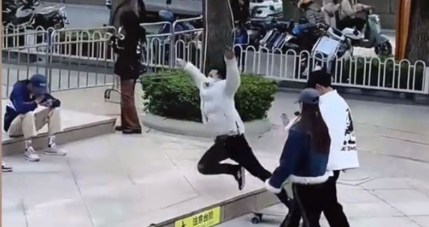 男生为了偷看别人女朋友,结果一不小心摔了个"四脚朝天"