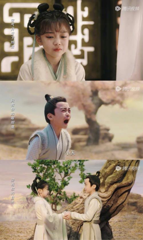 长相思的开篇虽然不是大家一直期盼的清水镇,不是杨紫演绎的小夭,但两位小演员交代背景的演绎很有演技。小玱玹和小小夭把生离死别演绎的很准确,那种强忍悲痛却笑着离别很高级,离情别绪的代入感非常强烈,加上张杰歌声的渲染不落几滴泪亦得抽噎一下。