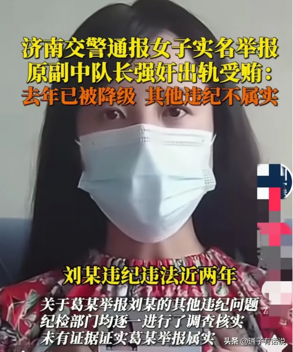 近日,据《四川观察》爆料,一名来自山东的葛女士,手持身份证,在多个社交平台发布了举报视频,实名举报济南交警天桥二中队原副队长刘某,酒后强奸、婚外情、受贿、私闯民宅等违规违纪行为。