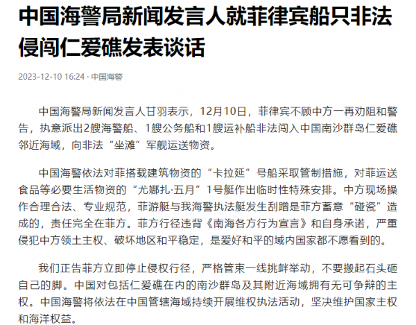 菲律宾方面两位军方高层登上仁爱礁,难道是我海警的拦阻行为失败了?其实并不是这样的,从中国海警多条警讯中就能看出,其实我海警对于此次处置菲律宾方面的挑衅行为相当成功的。