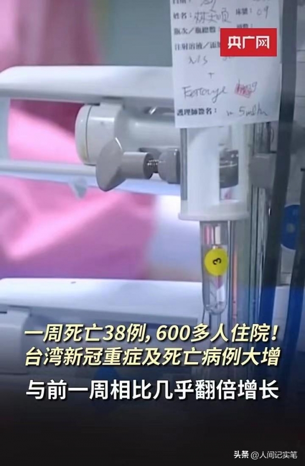 根据央广网消息,台湾卫生部门最新发布的数据,让人不由得捏了一把汗。6月11日至17日,台湾新增了623例新冠并发症住院病例,而且新增死亡病例达到了38例。这数据一出,震惊了不少人。这意味着比前一周的数据几乎翻了一番!住院和死亡病例的急剧增加,给台湾人民带来了极大的困扰与不安