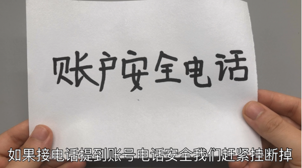 如果接电话提到账号电话安全我们赶紧挂断掉,他们会以短信形式发到我们的手机上,说我们的账户处于维修登不上去的状态,还会给我们留上电话号码。我们看到电话肯定会给他们打电话过去,他们接到我们的电话会非常热情,我们就会按照他的指示操作,慢慢就会把钱转到他们的账户去了。所以如果接到关于账户安全的电话或者信息,要及时挂断不要相信。