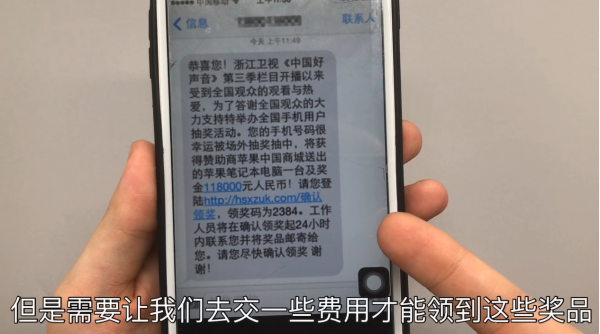 如果你接到电话或者收到关于中奖的信息,大家千万不要相信,这些中奖电话或信息是诈骗最常见的一种。他们通常的内容会说在某一个节目上,你的手机号码幸运抽中奖了,虽然说你已经中奖了,但是需要让我们去交一些费用才能领到这些奖品。如果你真的去交费就中了他们的圈套了,等你交完钱他们会以别的理由推脱,最后你在反应过自己被骗了。