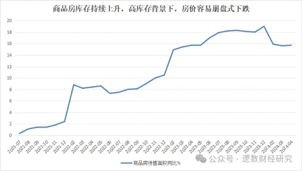 从商品房的库存增速来看,2021、2022、2023、2024年,连续四年商品房库存都是增长的,尤其是2023年、2024年商品房库存同比增速高达15%左右,库存的大幅上升,反映了房子供应严重过剩,供应过剩背景下,房价容易崩盘式下跌。