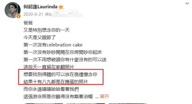 虽然何超仪并不想借这位豪门爸爸"光",可能从其发文的字里行间,感受到她对父亲的爱与崇拜。
