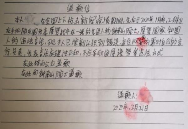 涂某亲笔书写了道歉信,愿意主动在媒体上公开道歉,消除不良影响。