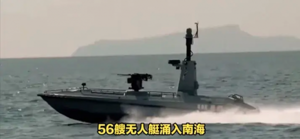 据报道,中国在南海投入了56艘无人艇。这些无人艇各自搭载有全套武器系统,包括导弹、鱼雷、火箭炮等,具备了独立作战的能力。这些无人艇可以通过卫星通信和无线网络进行指挥和控制,并且能够相互协同作战。