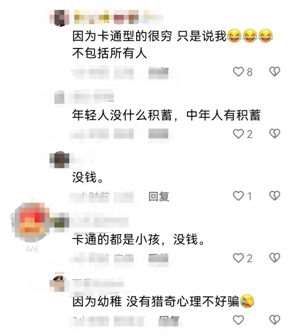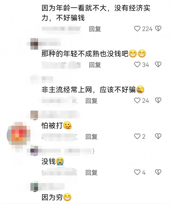 因为年龄一看不大,没有经济实力,不好骗钱;卡通型的都很穷,只是说我;卡通的都是小孩,没钱。