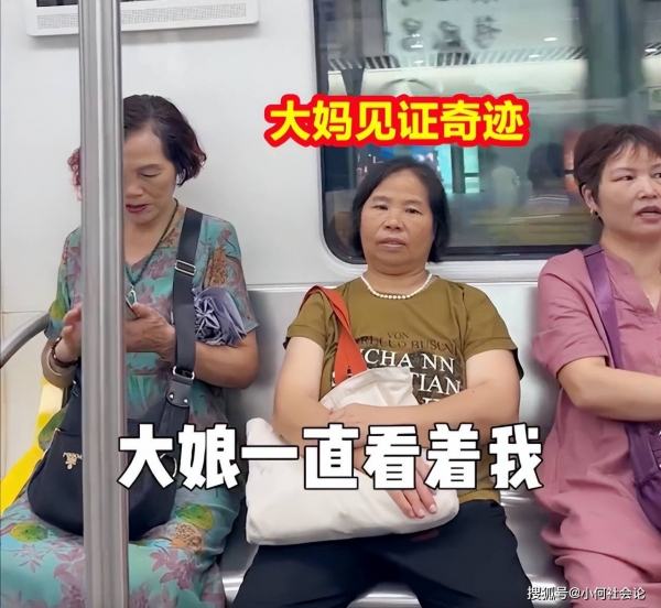 由于女子的行为在地铁上十分显眼,坐在她对面的一名大妈全程都盯着她看,见证了她完成蜕变。