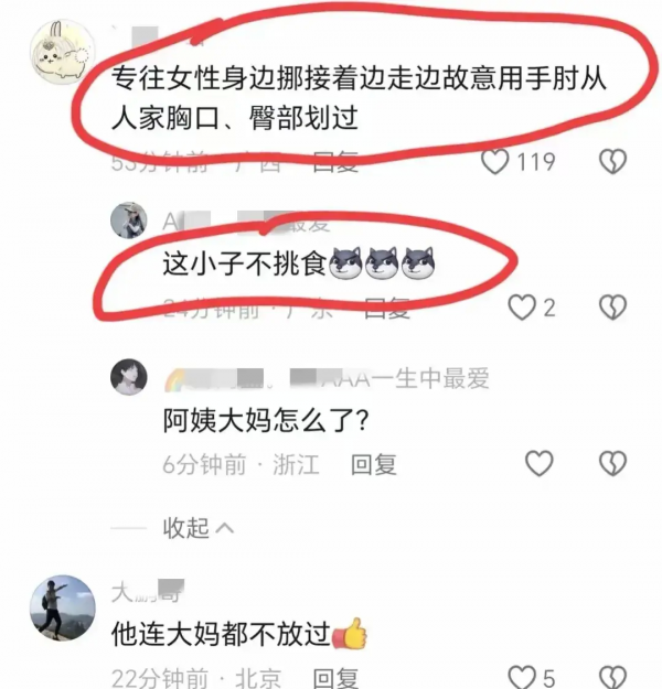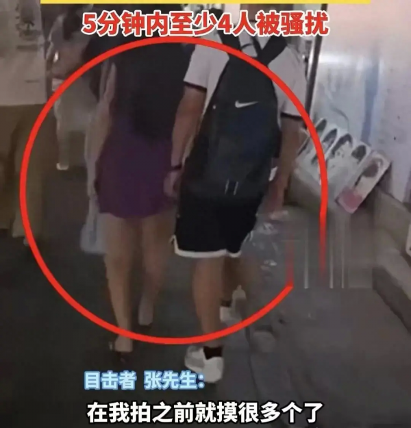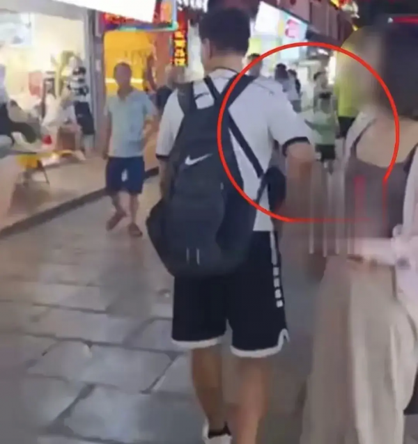 7月10日,广西桂林阳朔西街,有市民反应称:"有一个猥琐男故意支起手肘,触碰女生胸部或者臀部,走哪碰哪,5分钟内就至少碰了4个。"