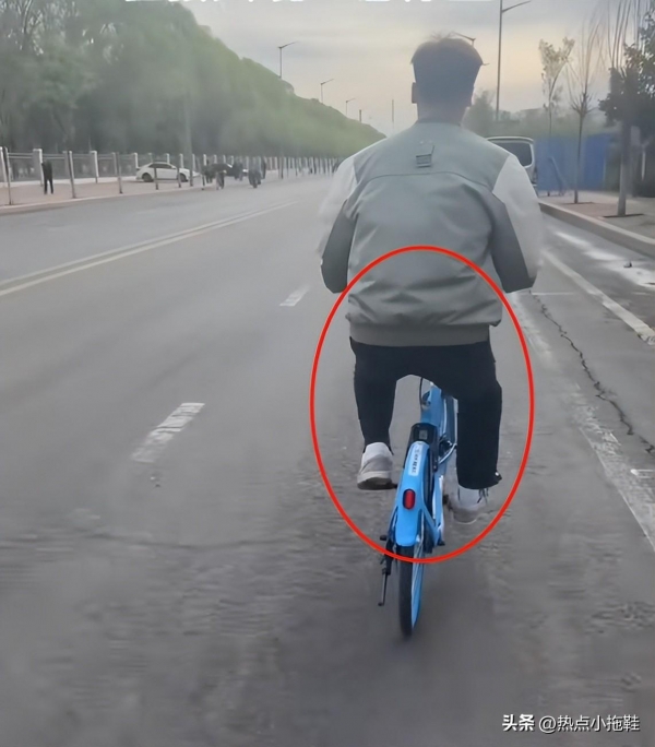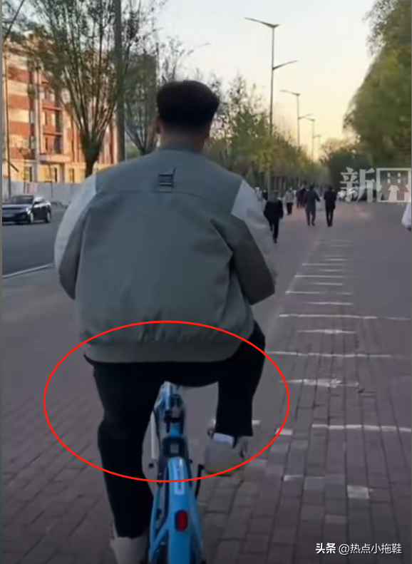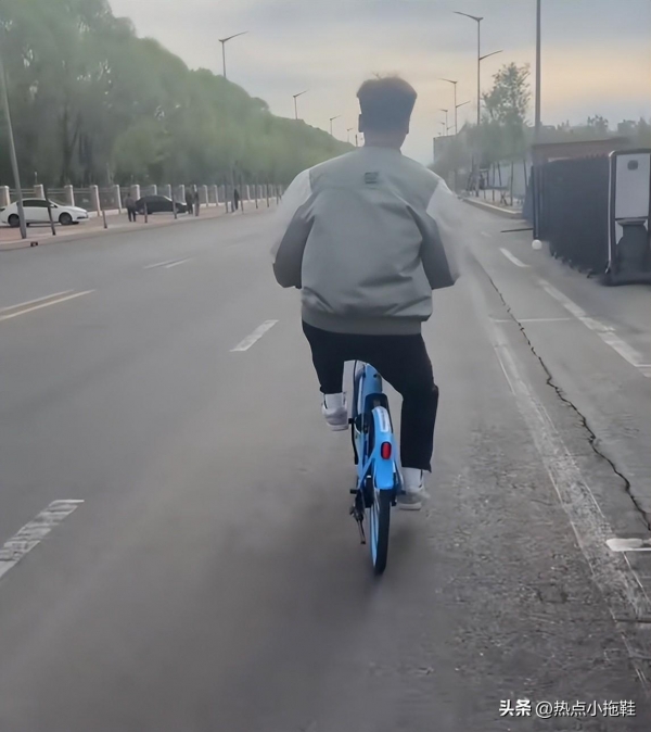 让人惊讶的是,程同学竟然成功地骑上了无座单车,还保持着一种"悬浮坐"的姿势。