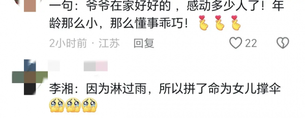 一句:爷爷在家好好的 ,感动多少人了!年龄那么小,那么懂事乖巧!