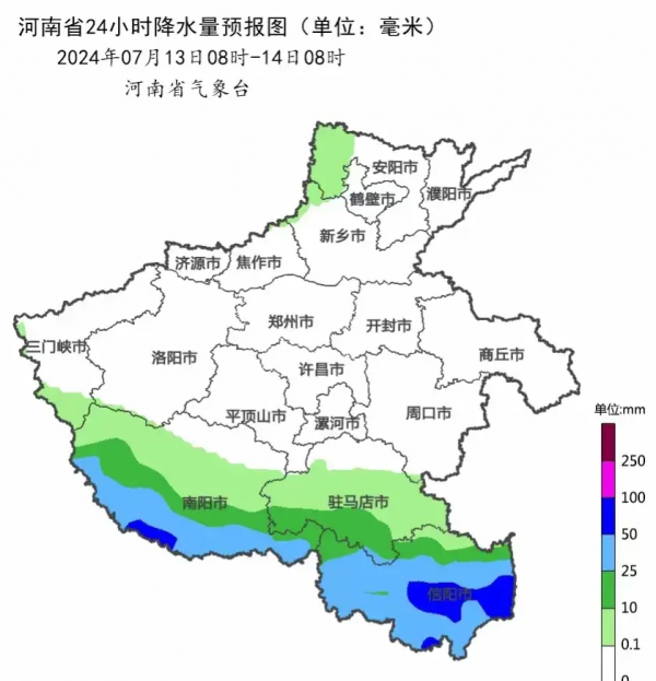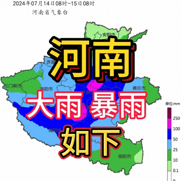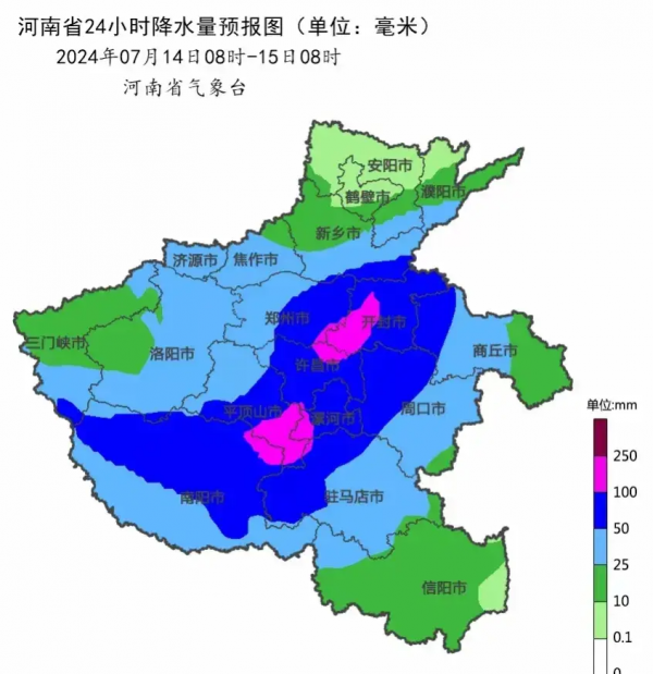 预计14日河南全省迎来大范围强降雨,中部、西南部的郑州、南阳、驻马店、许昌、漯河、开封等部分地区暴雨,局地大暴雨,其他地区出现大雨。