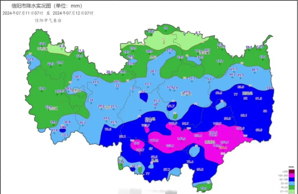 河南信阳降雨变化大,昨日的还是大到暴雨,今日就转为小到中雨。可以看出此次降雨中心反转,降雨量变成豫中北多、豫南少的情况。