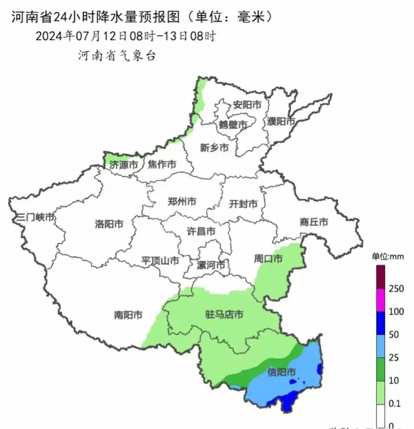12日下午到夜间:信阳、南阳东南部、驻马店南部、平顶山东部、周口店南部有阵雨、雷阵雨。阵雨突发性强,今日夜里出门记得看好天气预报,带好雨伞出门。