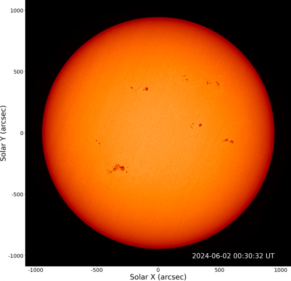 此次爆发日冕物质抛射的太阳活动区13697位于可见日面的中部偏东南侧,正随着太阳自转逐渐正对地球,其面积不是很大,但磁场结构为复杂的β-γ-δ型,曾在6月1日至2日连续爆发3次X级以上耀斑,且未来仍有爆发中等强度以上耀斑的可能。