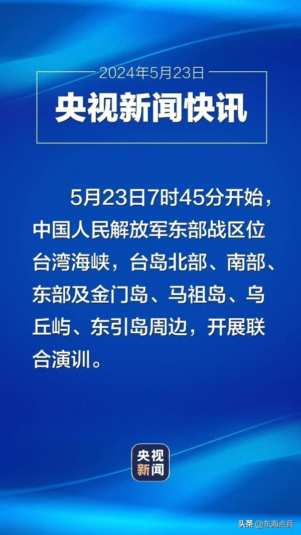 人民解放军东部战区23日早上7点46分发布消息,当天7时45分开始,东部战区在位于台湾海峡、台岛北部、南部、东部以及金门岛、妈祖岛、乌丘屿、东引岛周边,开展联合演训。同一时间福建海警也首次进入乌丘屿、东引岛所谓"限制水域"。这次行动体现了军警协调,敲打台湾当局意图很明显。