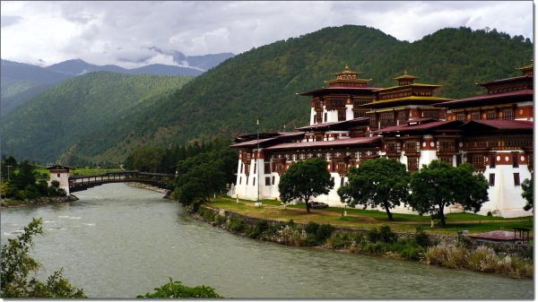不丹位于中国和印度之间的喜马拉雅山脉东段,东、北、西三面与中国接壤,南部与印度交界,是一个被两大国包围的内陆国,首都叫廷布,距离中国仅45公里,面积仅为3.8万平方公里,比我国台湾省略大一些,人口约76万,差不多我国一个县城人口总数,不过不丹的森林覆盖率名列前茅,占国土面积的72%,是许多国家望尘莫及的。