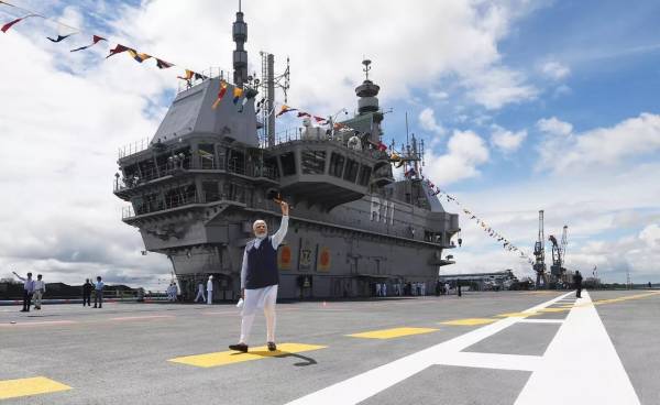 2022年9月2日,印度总理莫迪在"维克兰特"号甲板上 图片来源:社交媒体