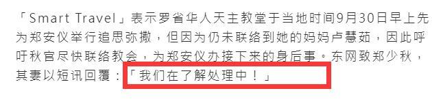 按理来说,此事完全不用郑少秋出面,毕竟父女已经断联很多年,但因为教会无法联系到郑安仪的母亲卢慧茹,所以不得不选择联系郑少秋。