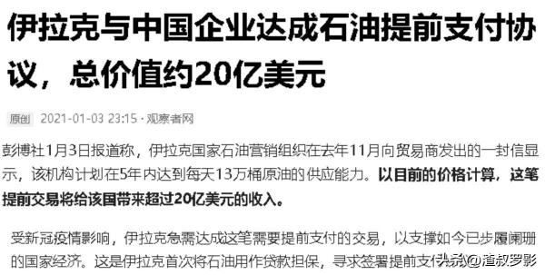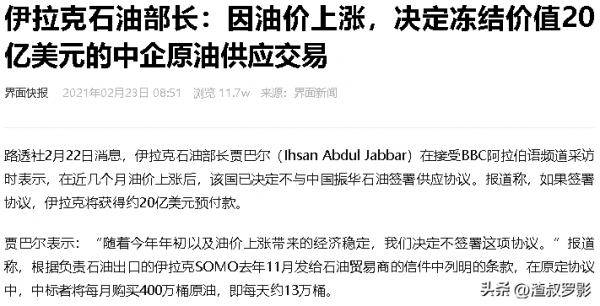 对于中国这个"老朋友",伊拉克更是直接"变脸",2021年2月22日,据有关新闻报道,伊拉克冻结了与中国签订过的石油合同。