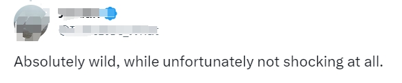 还有人写道:"真是无法无天,但不幸的是一点也不令人震惊。"