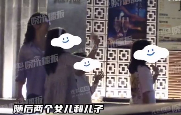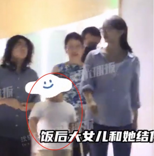 小儿子则乖巧地跟在妈妈的右手边,看上去已经是个大小伙子了,身高超过了妈妈的腰部。