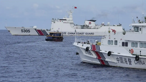 3月23日,菲律宾再度派遣船只在南海滋事挑衅,此次菲方瞄准的是仁爱礁。根据中国海警局新闻发言人甘羽的证实,此次菲方派出的船只包括2艘海警船和1艘运补船,它们打着向非法"坐滩"在仁爱礁的老旧军舰"马德雷山"号运送生活物资的旗号,在未经中方同意的情况下,强行闯入仁爱礁邻近海域,但遭到中国海警依法依规的拦阻和驱离。