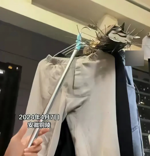 鸟儿也成基建狂魔了?近日,安徽铜陵,一学校学生假期回宿舍收晾在阳台上的衣服,发现几个衣架上有鸟儿筑巢成功,还下两个蛋,真是奇了怪了。
