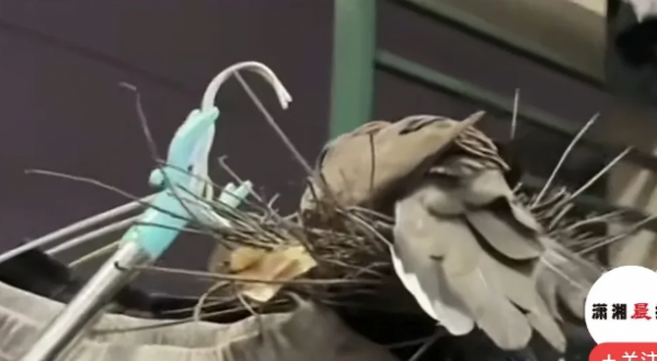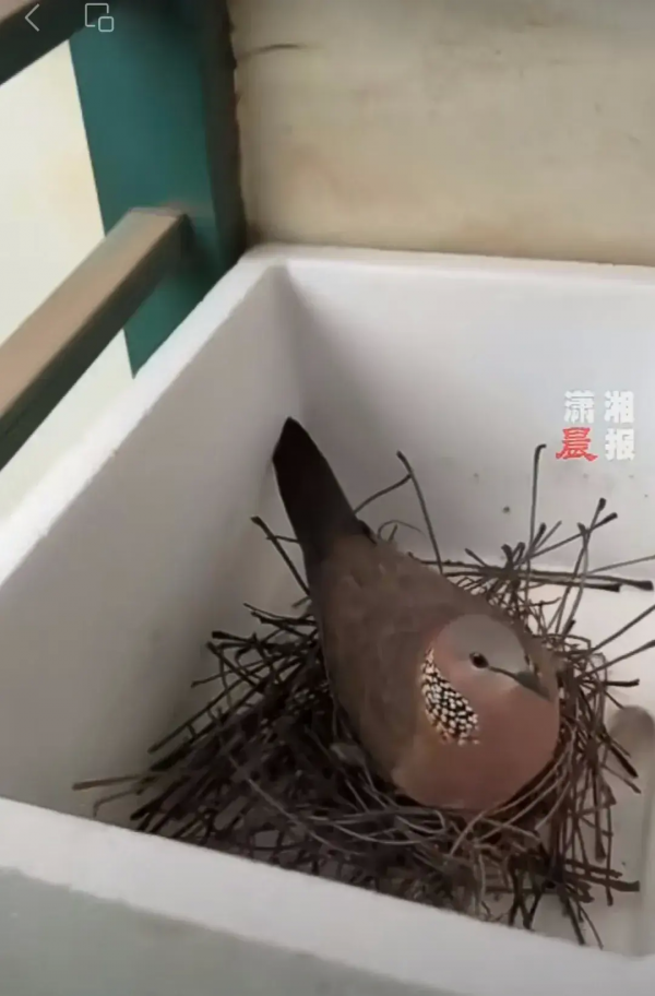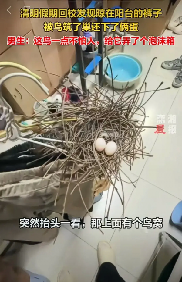 男生晾阳台的裤子被鸟筑巢还下了蛋
