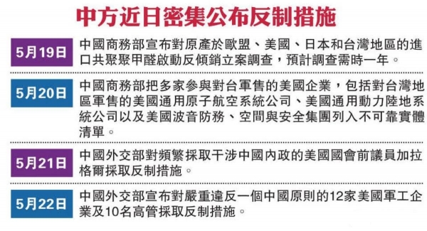 这一系列制裁的理由也相当一致,都是因为美国违反"一个中国"原则和中美《三个联合公报》,进行对台军售,在1982年签署的《八一七公报》中,美国就做出明确承诺,将在公报签署之后逐步减少对台军售直至完全停止,但近几年来,美国不但频繁加码对台军售,还在军售内容上大做文章,提供各类先进武器。