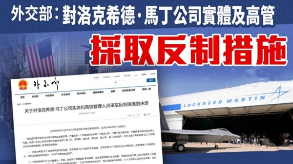 6月21日,中国外交部发布了一则公告,名为关于对洛克希德·马丁公司实体和高级人员采取反制措施的决定,该决定自发布当天起施行,主要内容为冻结洛克希德·马丁导弹系统集成实验室、洛克希德·马丁先进技术实验室、洛克希德·马丁投资公司等实体在中国境内的动产、不动产和其他各类财产。