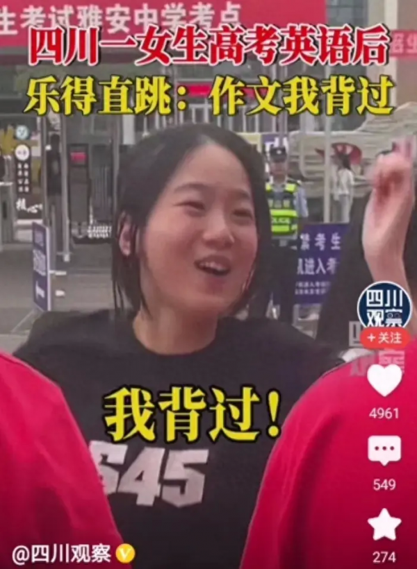 四川雅安一女生跳着出考场,笑称:我背过英语作文,网友热议:高考成了押宝游戏。