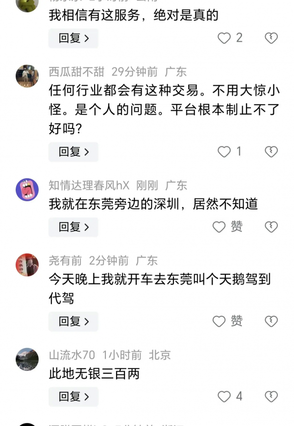 近期网上有人披露一个叫做天鹅代驾的小程序平台被用户揭露出该平台女司机提供代驾以外的"特殊服务"。