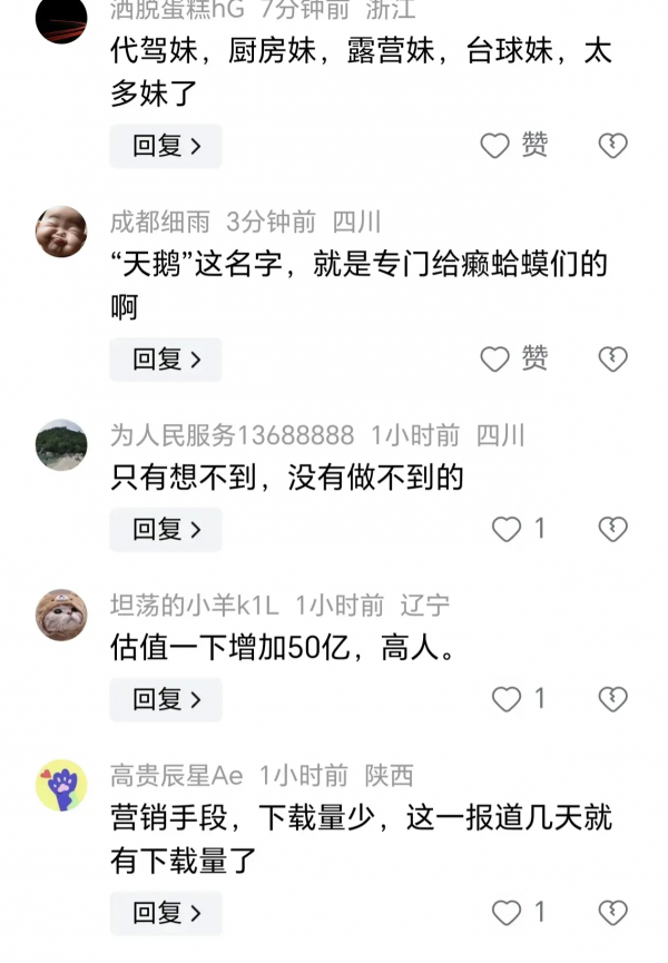 网友表示自己并没有听说过天鹅代驾这个平台,现在发生了这样的事情,大家很好奇,想去下载看看,因为我们身边的代驾的话,一般是没有听说过这个代驾的,而且也没有听说过一个代驾公司是专为女性开设的,为女性提供更多就业机会,这个公司真的蛮有特点的,网友看了以后觉得这一波营销确实挺厉害的,就弄了几张聊天截图,然后就让这个代驾平台火爆,全网让大家都知道了,不仅提高了知名度嗯,然后还纷纷对这个这个天鹅代驾充满好奇,这件事情还在调查处理中,希望大家理智看待