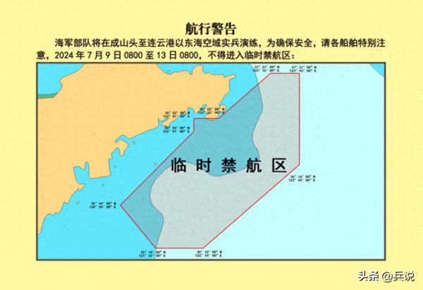 据最新消息,我国还在东海划下禁区,海军部队将在成山头至连云港以东的某处海菊进行实弹演练。